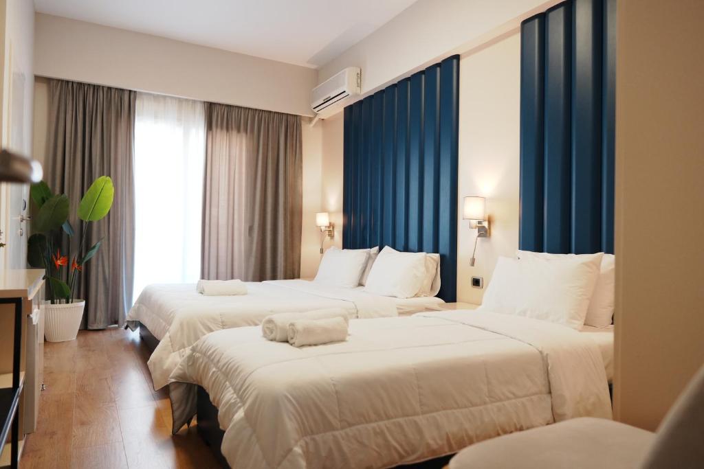 This air-conditioned quadruple room is consisted of of a flat-screen TV with satellite channels, a private bathroom as well as a balcony with sea views. The unit has 3 beds.